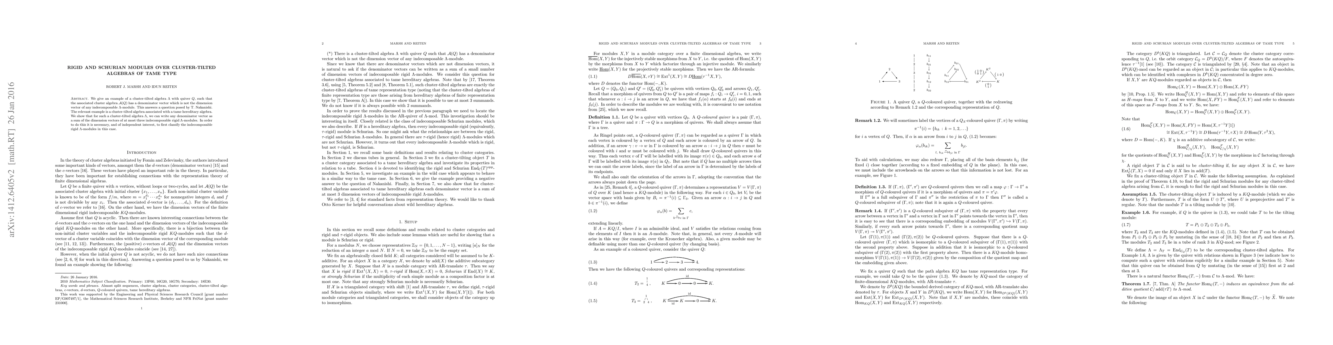We give an example of a cluster-tilted algebra A with quiver Q, such that the associated cluster algebra has a denominator vector which is not the dimension vector of any indecomposable A-module. This answers a question posed by T. Nakanishi. The relevant example is a cluster-tilted algebra associated with a tame hereditary algebra. We show that for such a cluster-tilted algebra A, we can write any denominator vector as a sum of the dimension vectors of at most three indecomposable rigid A-modules. In order to do this it is necessary, and of independent interest, to first classify the indecomposable rigid A-modules in this case.