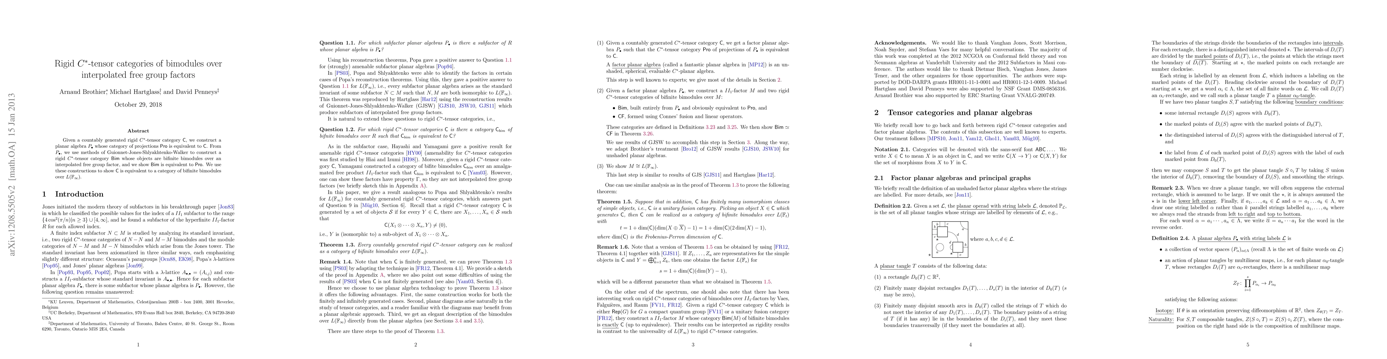 This paper constructs a rigid C^*-tensor category Bim of bifinite bimodules over an interpolated free group factor, showing its equivalence to a given countably generated rigid C^*-tensor category C via the intermediary planar algebra P. The construction leverages advanced techniques from operator algebras.