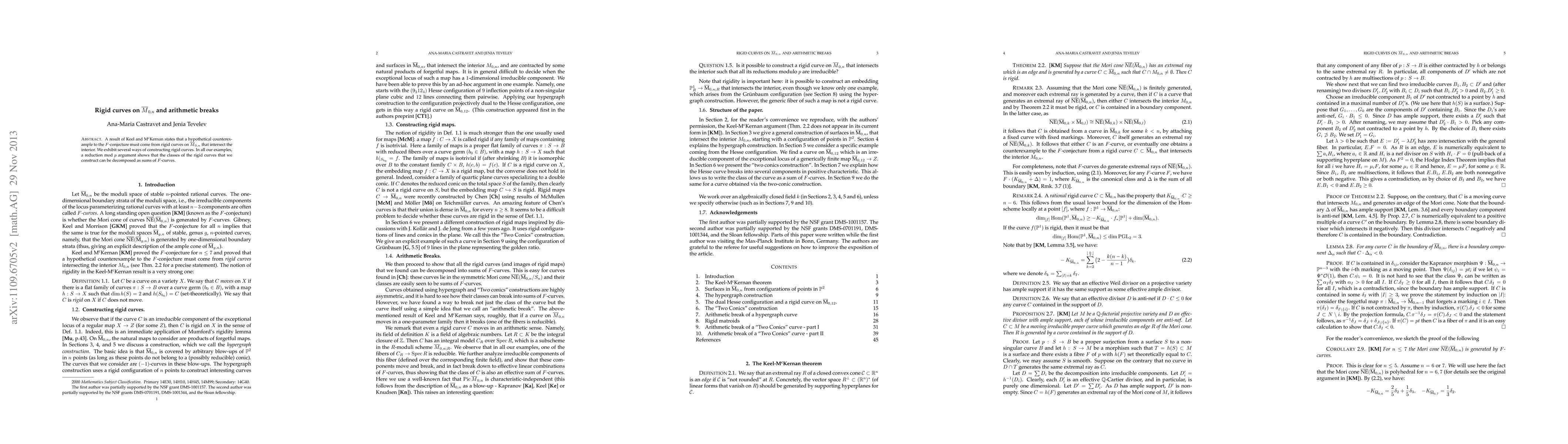 A result of Keel and McKernan states that a hypothetical counterexample to the F-conjecture must come from rigid curves on $\bar {M}_{0,n}$ that intersect the interior. We exhibit several ways of constructing rigid curves. In all our examples, a reduction mod p argument shows that the classes of the rigid curves that we construct can be decomposed as sums of F-curves.