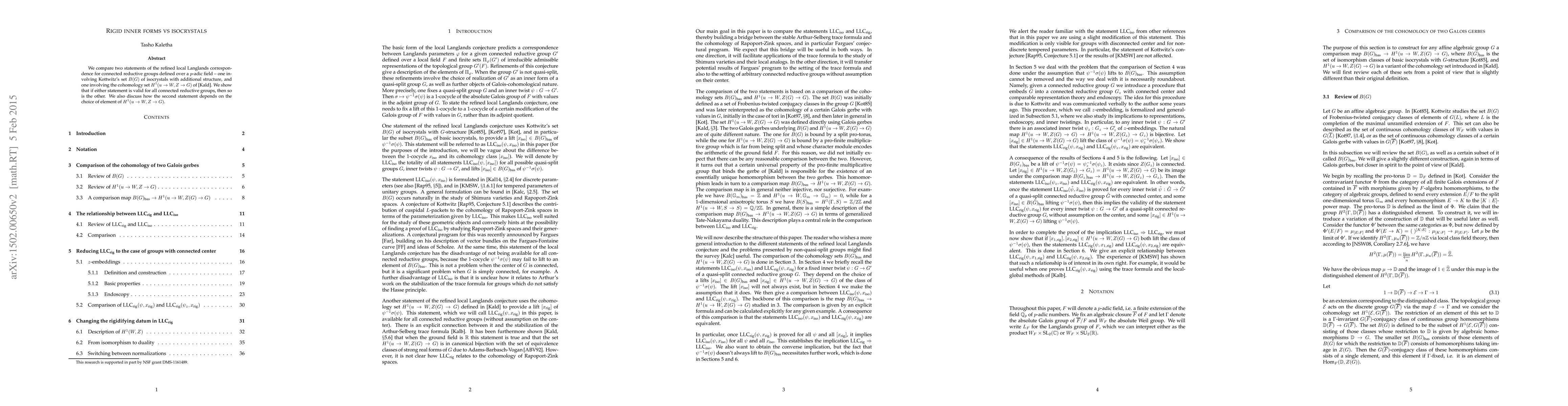 We compare two statements of the refined local Langlands correspondence for connected reductive groups defined over a p-adic field -- one involving Kottwitz's set B(G) of isocrystals with additional structure, and one involving the cohomology set H^1(u -> W,Z -> G) introduced in arXiv:1304.3292. We show that if either statement is valid for all connected reductive groups, then so is the other. We also discuss how the second statement depends on the choice of element of H^1(u -> W,Z -> G).
