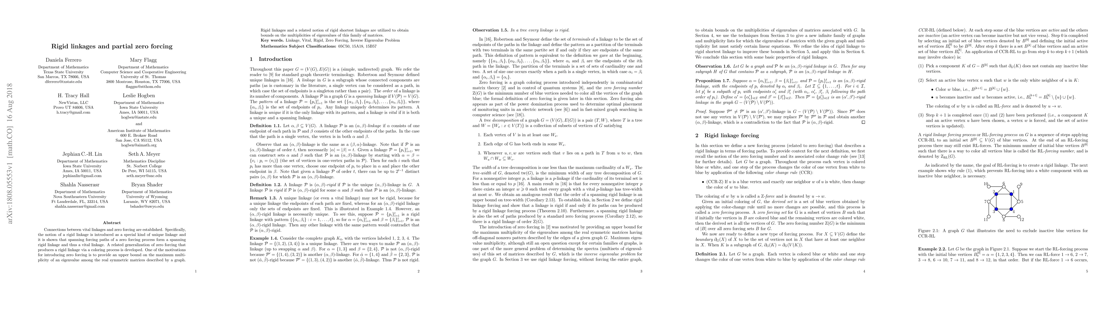Connections between vital linkages and zero forcing are established. Specifically, the notion of a rigid linkage is introduced as a special kind of unique linkage and it is shown that spanning forcing paths of a zero forcing process form a spanning rigid linkage and thus a vital linkage. A related generalization of zero forcing that produces a rigid linkage via a coloring process is developed. One of the motivations for introducing zero forcing is to provide an upper bound on the maximum multiplicity of an eigenvalue among the real symmetric matrices described by a graph. Rigid linkages and a related notion of rigid shortest linkages are utilized to obtain bounds on the multiplicities of eigenvalues of this family of matrices.