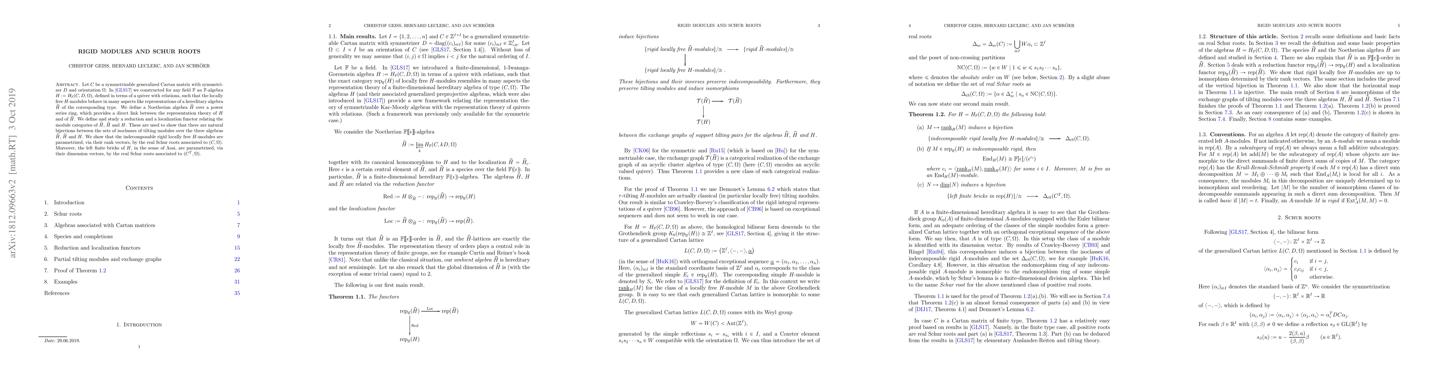 Let $C$ be a symmetrizable generalized Cartan matrix with symmetrizer $D$ and orientation $\Omega$. In previous work we associated an algebra $H$ to this data, such that the locally free $H$-modules behave in many aspects like representations of a hereditary algebra $\tilde{H}$ of the corresponding type. We define a Noetherian algebra $\hat{H}$ over a power series ring, which provides a direct link between the representation theory of $H$ and of $\tilde{H}$. We define and study a reduction and a localization functor relating the module categories of these three types of algebras. These are used to show that there are natural bijections between the sets of isoclasses of tilting modules over $H$, $\hat{H}$ and $\tilde{H}$. We show that the indecomposable rigid locally free modules over $H$ and $\hat{H}$ are parametrized, via their rank vector, by the real Schur roots associated to $(C,\Omega)$. Moreover, the left finite bricks of $H$, in the sense of Asai, are parametrized, via their dimension vector, by the real Schur roots associated to the dual datum $(C^T,\Omega)$.
