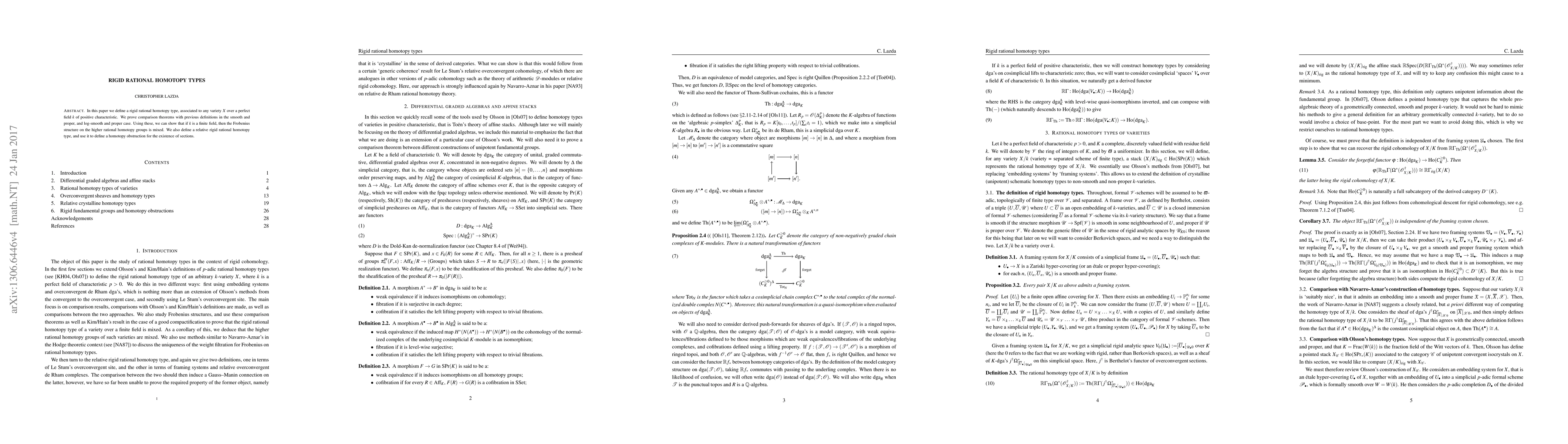 This paper introduces rigid rational homotopy types for varieties over fields of positive characteristic, proving their equivalence with existing definitions in certain cases. It demonstrates that for finite fields, these types exhibit mixed Frobenius structures on higher rational homotopy groups and defines a relative version to establish homotopy obstructions for section existence.