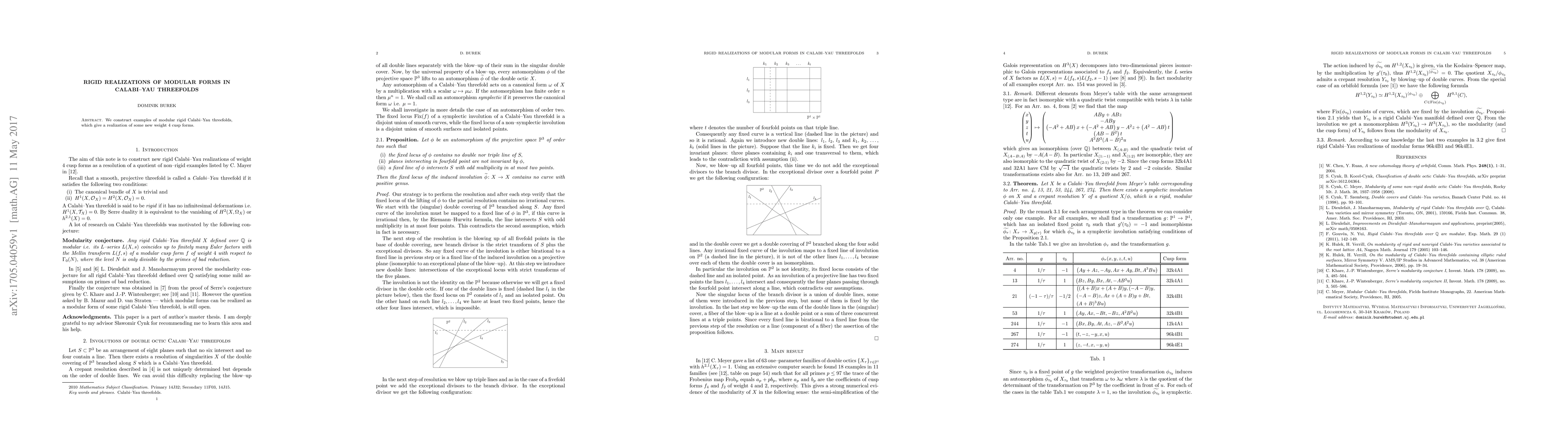 Summary: This paper presents examples of modular rigid Calabi--Yau threefolds that realize new weight 4 cusp forms, advancing the study of modular forms in geometric contexts.