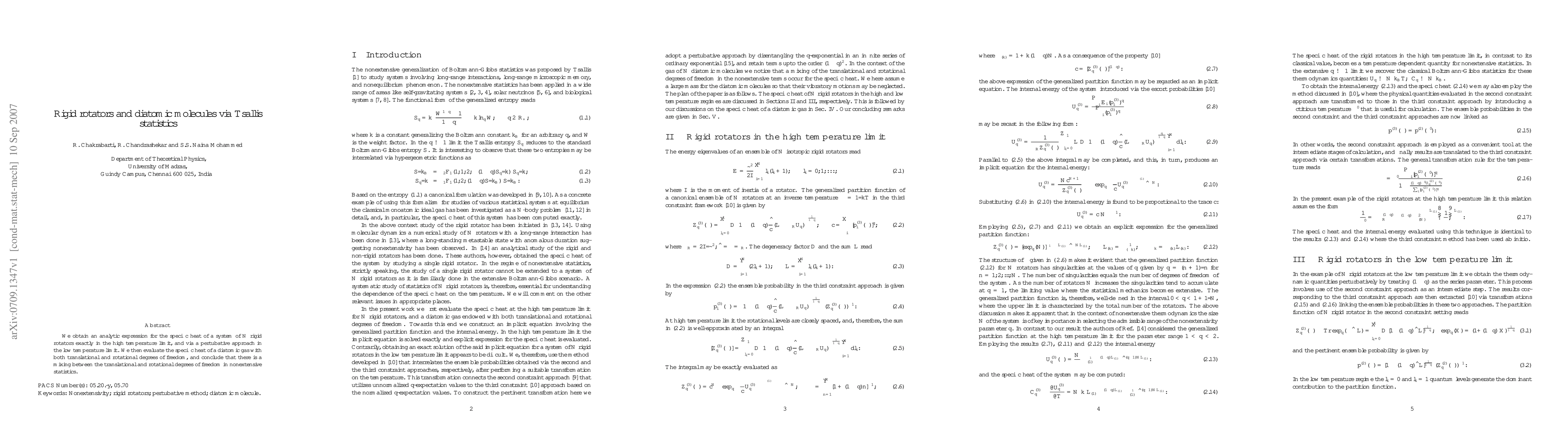 This paper derives an analytic expression for the specific heat of rigid rotators using Tsallis statistics, showing mixing between translational and rotational degrees of freedom in diatomic gases, both in high and low temperature regimes. The study highlights nonextensive statistical behavior in these systems.