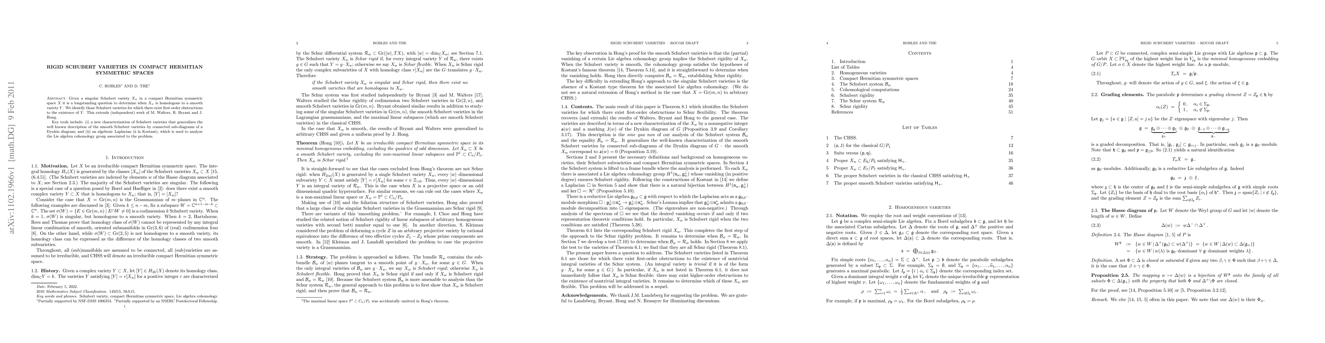 Given a singular Schubert variety Z in a compact Hermitian symmetric space it is a longstanding question to determine when Z is homologous to a smooth variety Y. We identify those Schubert varieties for which there exist first-order obstructions to the existence of Y. This extends (independent) work of M. Walters, R. Bryant and J. Hong. Key tools include: (i) a new characterization of Schubert varieties that generalizes the well known description of the smooth Schubert varieties by connected sub-diagrams of a Dynkin diagram; and (ii) an algebraic Laplacian (a la Kostant), which is used to analyze the Lie algebra cohomology group associated to the problem.