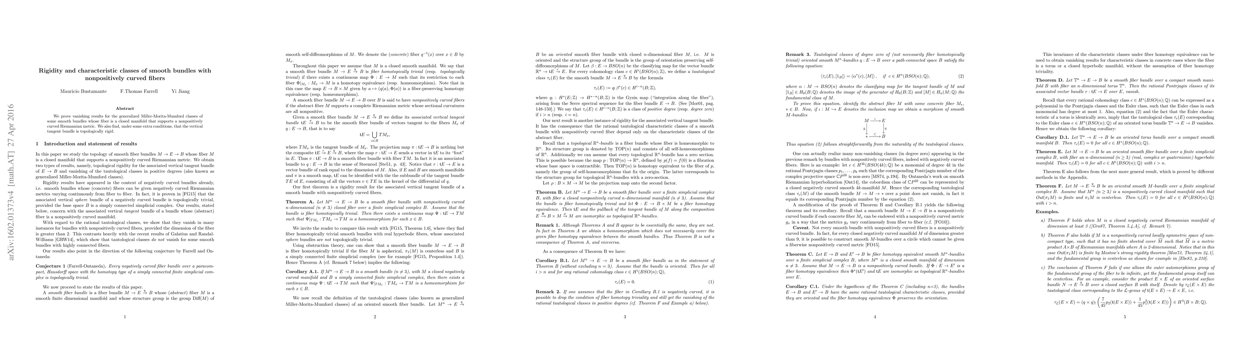 Summary: This paper demonstrates vanishing results for generalized Miller-Morita-Mumford classes in smooth bundles with nonpositively curved fibers and establishes topological rigidity for the vertical tangent bundle under additional conditions.