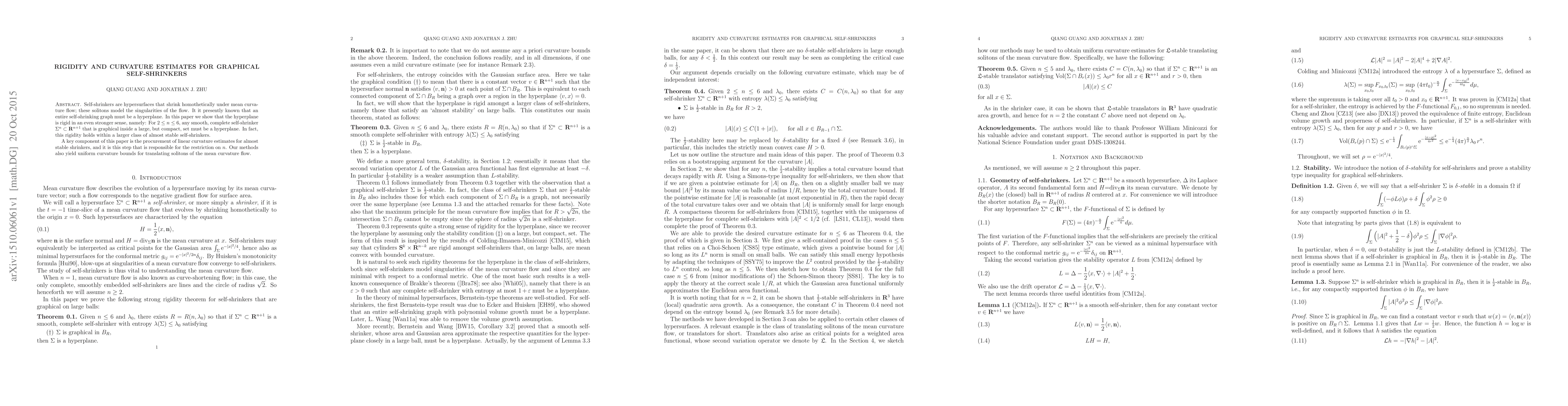 Self-shrinkers are hypersurfaces that shrink homothetically under mean curvature flow; these solitons model the singularities of the flow. It it presently known that an entire self-shrinking graph must be a hyperplane. In this paper we show that the hyperplane is rigid in an even stronger sense, namely: For $2 \leq n \leq 6$, any smooth, complete self-shrinker $\Sigma^n\subset\mathbf{R}^{n+1}$ that is graphical inside a large, but compact, set must be a hyperplane. In fact, this rigidity holds within a larger class of almost stable self-shrinkers. A key component of this paper is the procurement of linear curvature estimates for almost stable shrinkers, and it is this step that is responsible for the restriction on $n$. Our methods also yield uniform curvature bounds for translating solitons of the mean curvature flow.