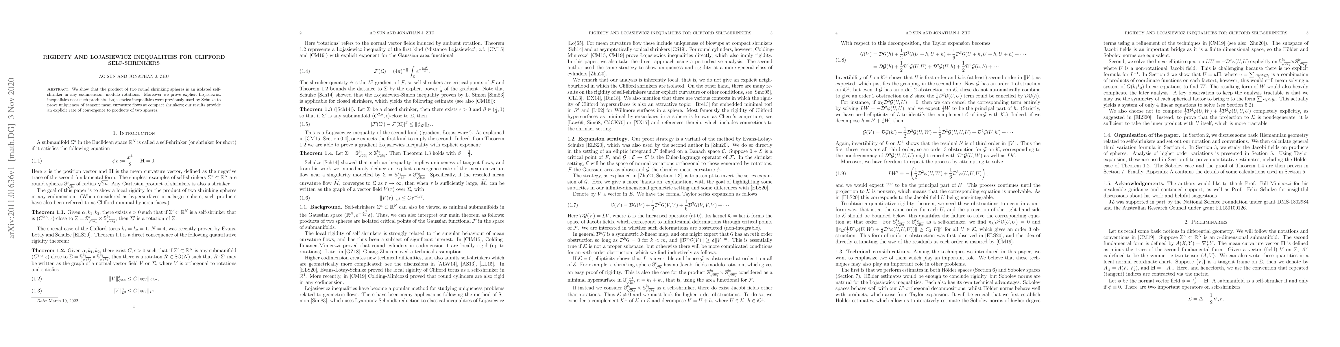This paper demonstrates that the product of two round shrinking spheres forms an isolated self-shrinker in any dimension, up to rotations, and establishes explicit {\L}ojasiewicz inequalities near these configurations, providing a rate of convergence for tangent mean curvature flows.
