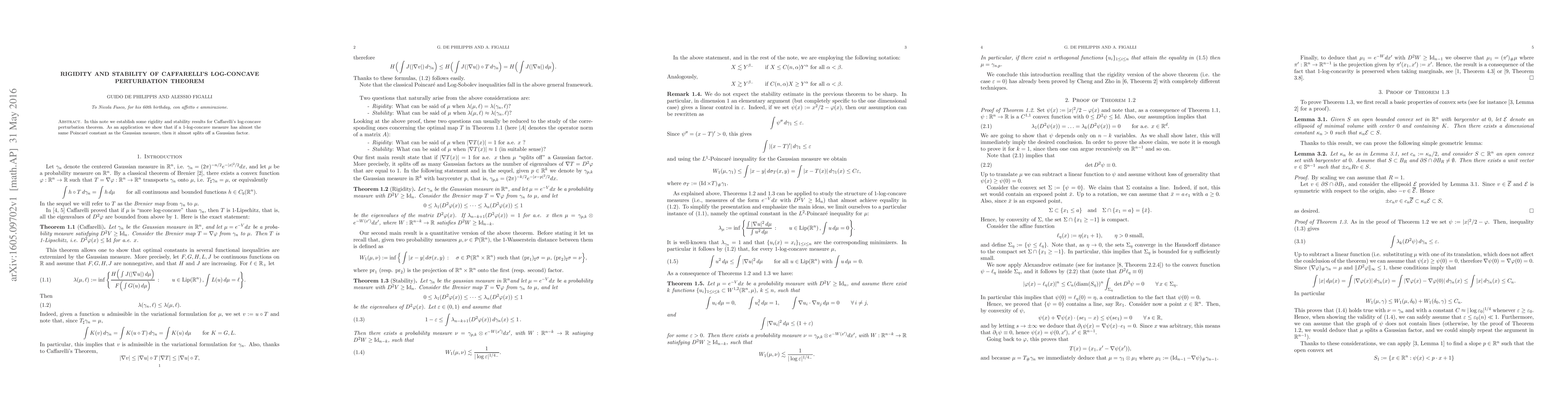This paper establishes rigidity and stability results for Caffarelli's log-concave perturbation theorem, demonstrating that a 1-log-concave measure with a nearly identical Poincaré constant to the Gaussian measure will almost split off a Gaussian factor.