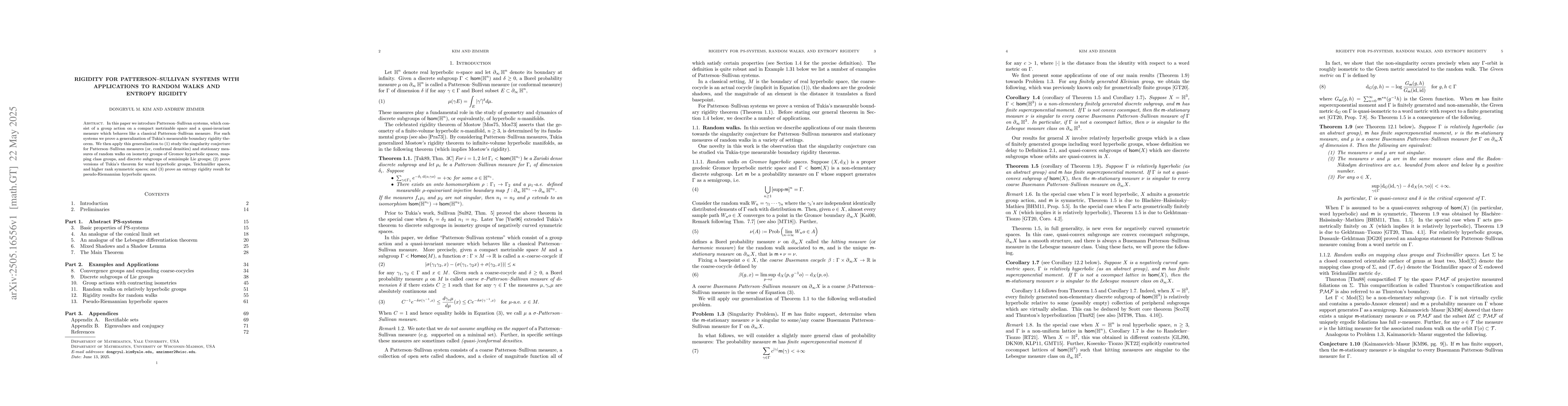 This work extends existing rigidity results to a broader class of Patterson--Sullivan systems and applies them to random walks and entropy rigidity, providing new insights in geometric group theory and measure-theoretic entropy.
