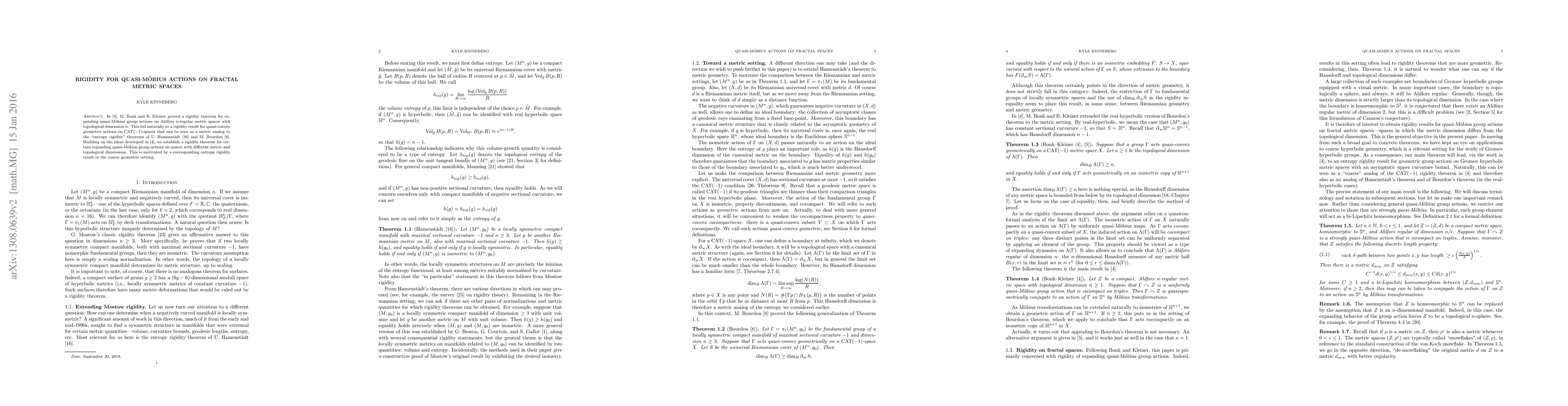 In \cite{BK02}, M. Bonk and B. Kleiner proved a rigidity theorem for expanding quasi-M\"obius group actions on Ahlfors $n$-regular metric spaces with topological dimension $n$. This led naturally to a rigidity result for quasi-convex geometric actions on CAT$(-1)$-spaces that can be seen as a metric analog to the "entropy rigidity" theorems of U. Hamenst\"adt and M. Bourdon. Building on the ideas developed in \cite{BK02}, we establish a rigidity theorem for certain expanding quasi-M\"obius group actions on spaces with different metric and topological dimensions. This is motivated by a corresponding entropy rigidity result in the coarse geometric setting.