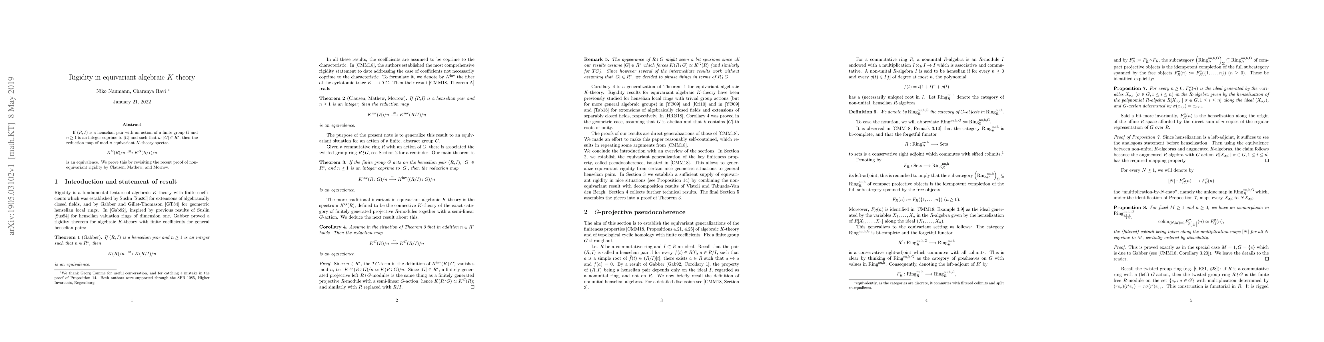Researchers prove that a reduction map between equivariant K-theory spectra of henselian pairs is an equivalence for certain conditions, establishing rigidity in equivariant algebraic K-theory.