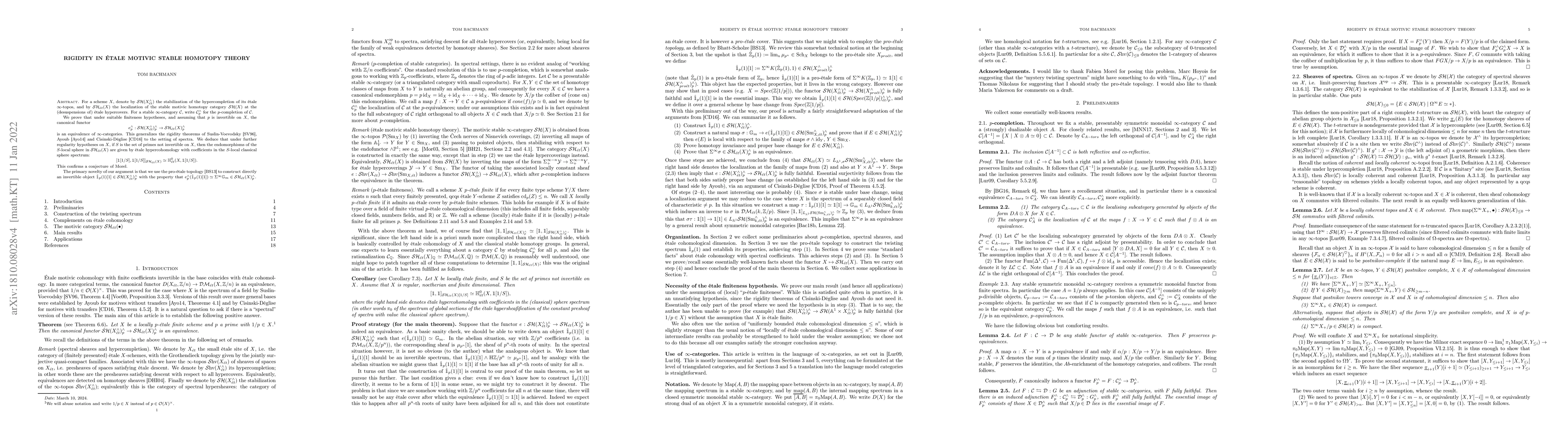 This paper demonstrates that under certain finiteness conditions and assuming p is invertible on X, the canonical functor between the p-completed stabilization of the hypercompletion of the étale ∞-topos and the p-completed localization of the stable motivic homotopy category is an equivalence. The key contribution is the construction of an invertible object in the former category using the pro-étale topology.