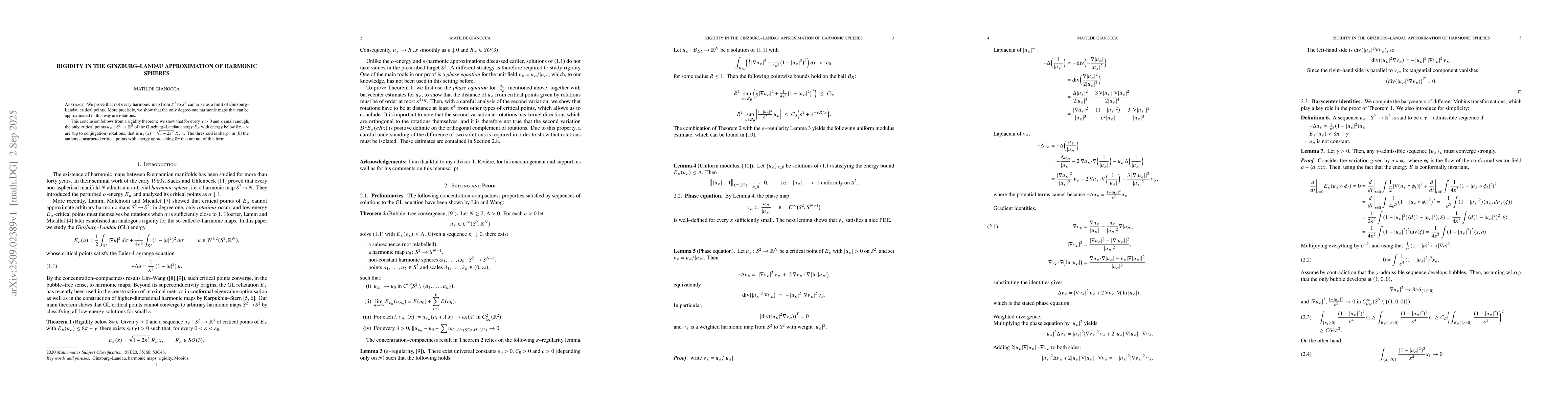 We prove that not every harmonic map from $S^{2}$ to $S^{2}$ can arise as a limit of Ginzburg--Landau critical points. More precisely, we show that the only degree-one harmonic maps that can be approximated in this way are rotations. This conclusion follows from a rigidity theorem: we show that for every $\gamma>0$ and $\varepsilon$ small enough, the only critical points $u_\varepsilon:S^{2}\to\mathbb R^{3}$ of the Ginzburg--Landau energy $E_\varepsilon$ with energy below $8\pi-\gamma$ are (up to conjugation) rotations, that is $u_\varepsilon(x)=\sqrt{1-2\varepsilon^{2}}\;R_\varepsilon\,x$.
