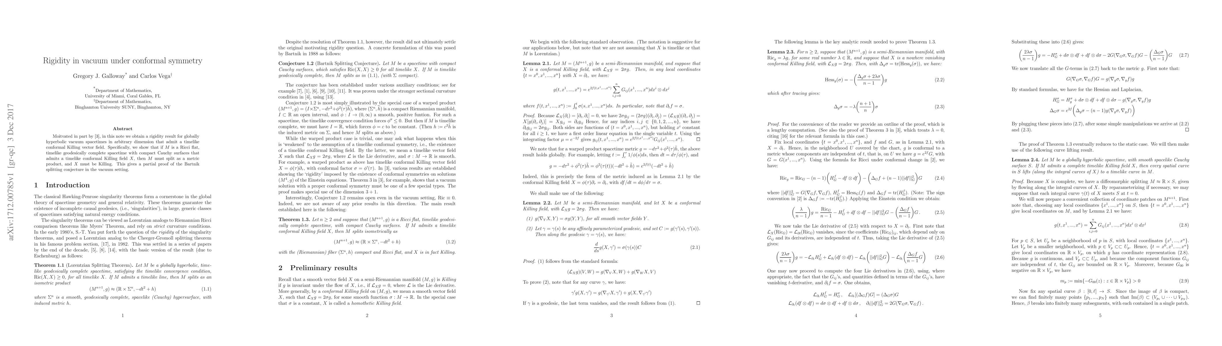 This research establishes a rigidity result for globally hyperbolic vacuum spacetimes in any dimension, which admit a timelike conformal Killing vector field. It shows such spacetimes must split as a metric product and the conformal Killing field must be Killing, partially proving the Bartnik splitting conjecture in vacuum scenarios.