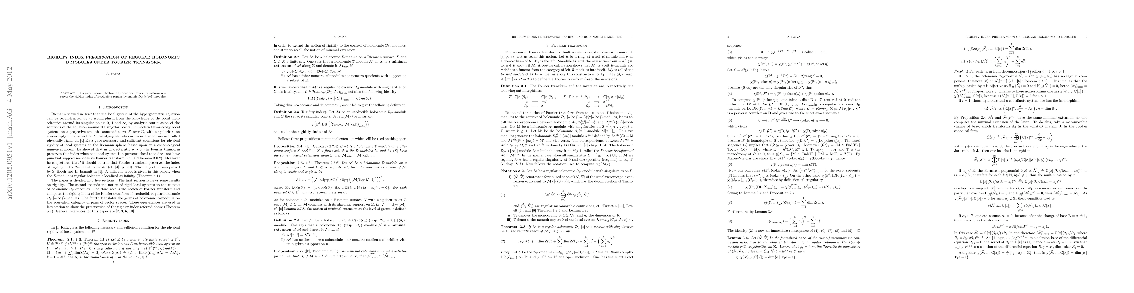 This paper demonstrates algebraically that the Fourier transform maintains the rigidity index for irreducible regular holonomic $\mathcal{D}_{\mathbb{P}^1}[*\{\infty\}]$-modules, illustrating a significant property of these mathematical structures.