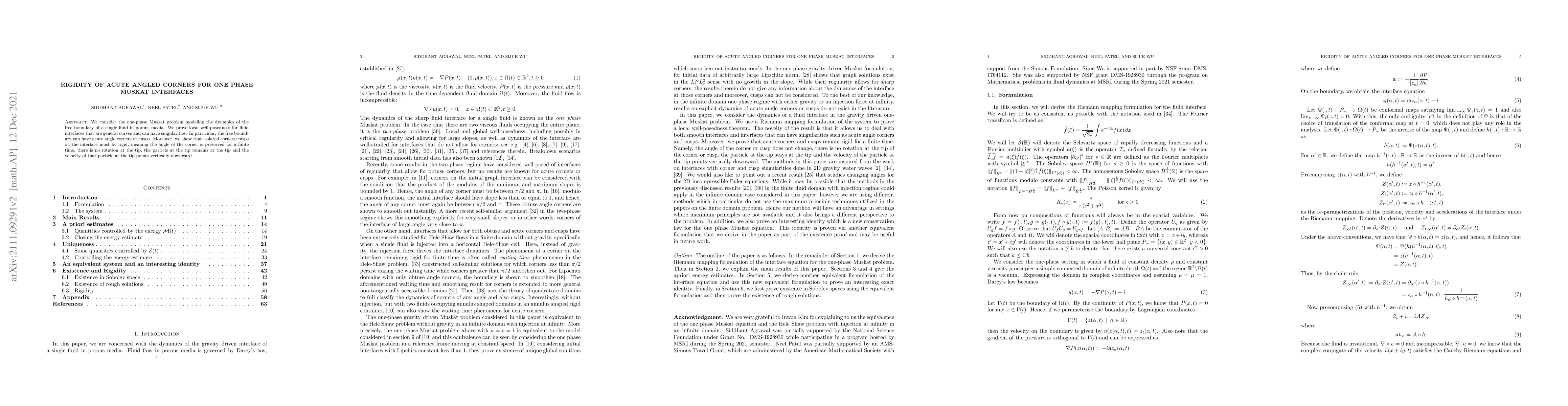 Researchers prove that acute angled corners in a fluid interface in porous media must remain rigid for a finite time, preserving the angle and vertical downward velocity of particles at the tip.