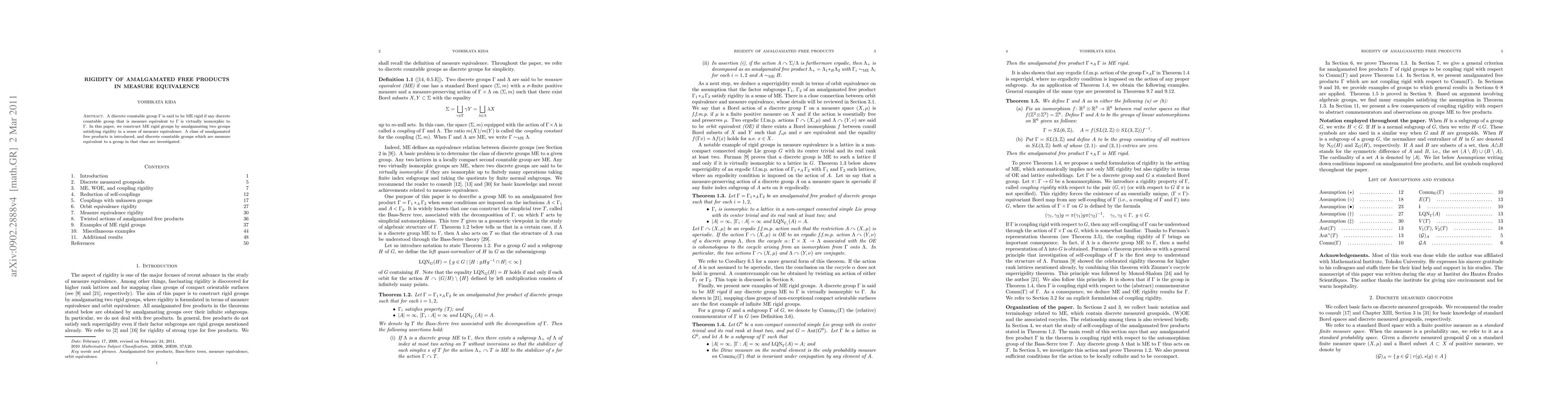 This paper investigates ME rigidity by constructing groups via amalgamated free products of rigid groups, introducing a class of such groups and examining their measure equivalence properties. The focus is on determining when groups measure equivalent to these constructed groups are virtually isomorphic to them.