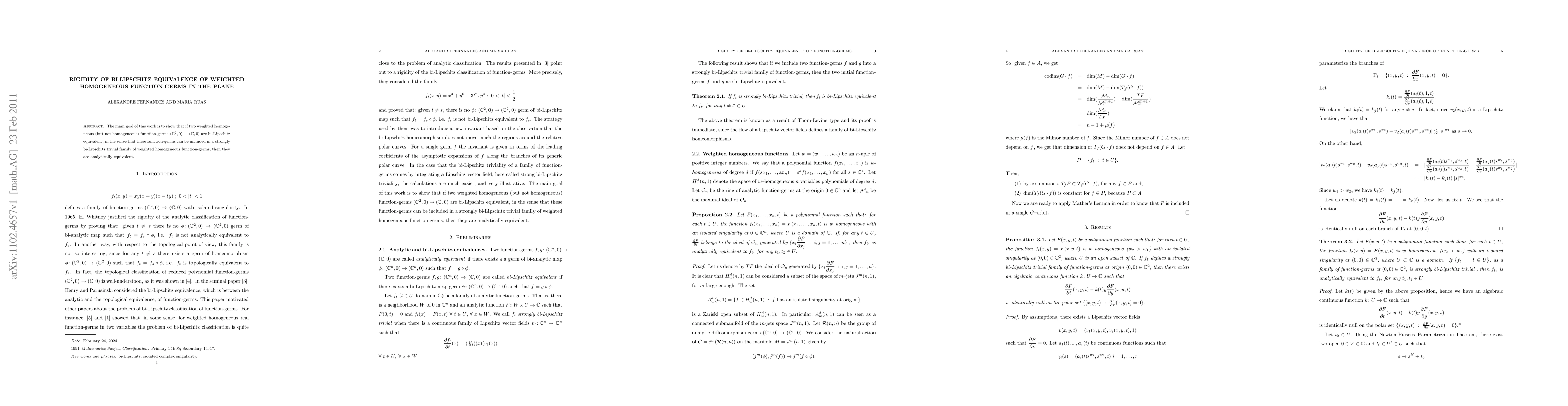 Summary: This research demonstrates that bi-Lipschitz equivalence of non-homogeneous weighted function-germs in the plane implies their analytical equivalence, establishing a rigidity property in the context of bi-Lipschitz transformations.