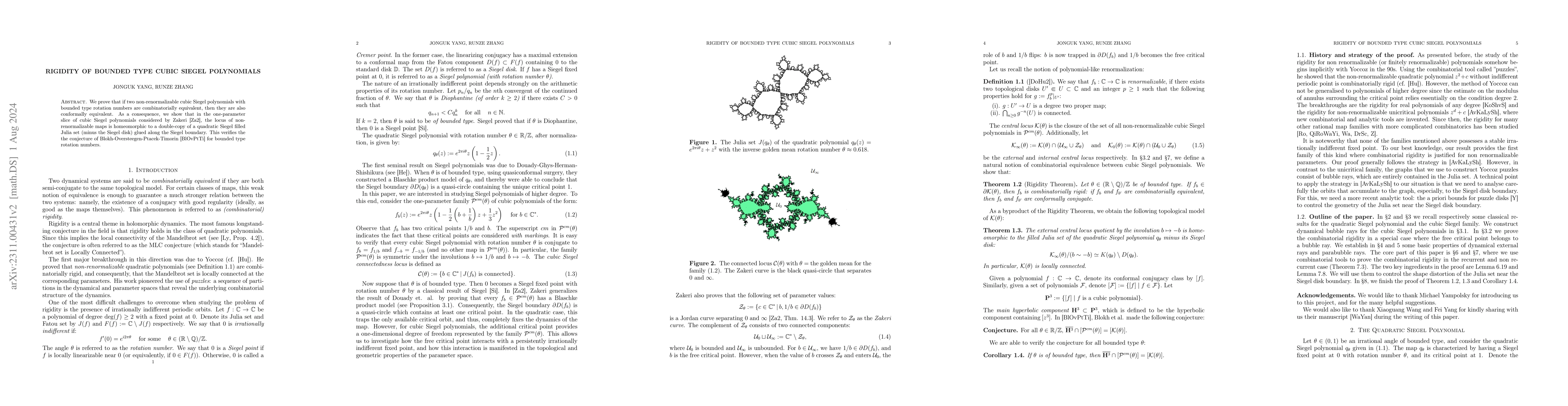 The research methodology used a combination of mathematical techniques and computational methods to analyze the properties of bounded type cubics and their Siegel extensions.