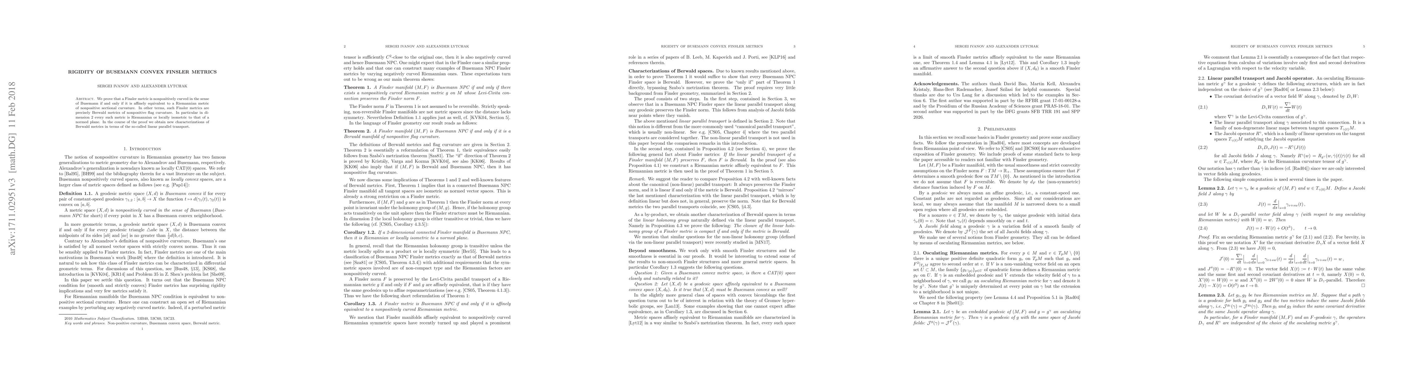 This paper proves that Busemann convex Finsler metrics are affinely equivalent to Riemannian metrics with nonpositive sectional curvature, specifically identifying them as Berwald metrics with nonpositive flag curvature. In dimension 2, such metrics are either Riemannian or locally isometric to normed planes.