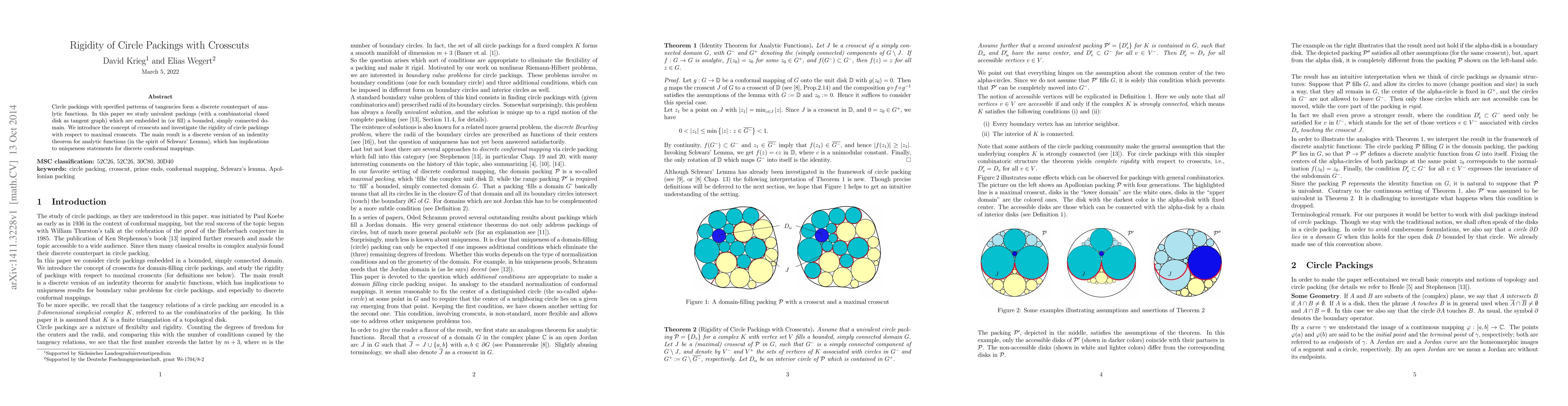 This paper explores the rigidity of circle packings embedded in bounded, simply connected domains, introducing the concept of crosscuts. It establishes a discrete version of an identity theorem for analytic functions, implying uniqueness statements for discrete conformal mappings.