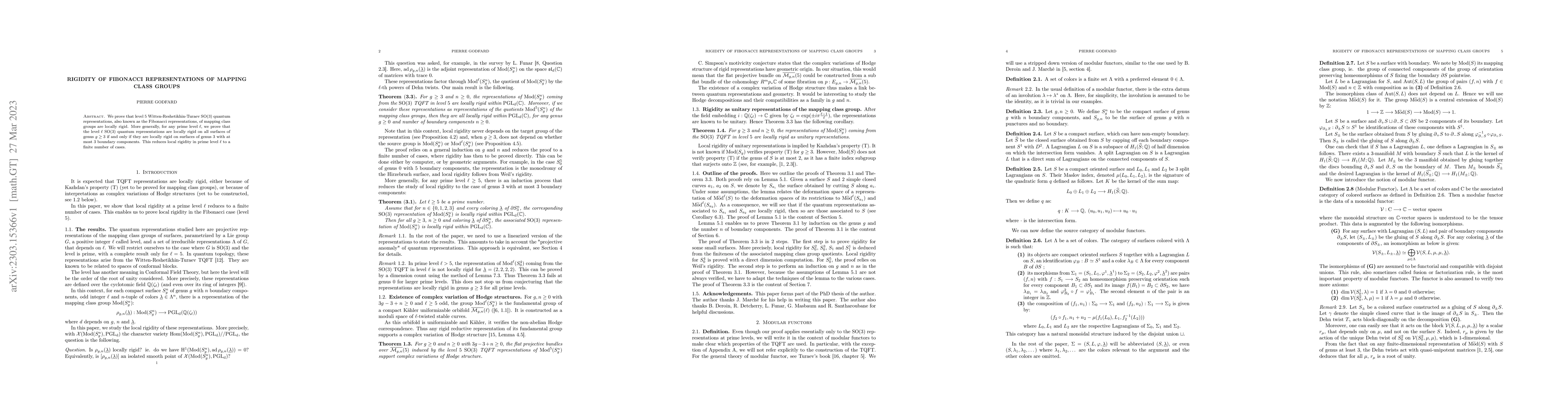 This research proves the local rigidity of level $5$ Fibonacci representations of mapping class groups, specifically level $\ell$ $\mathrm{SO}(3)$ quantum representations for any prime level. It concludes that local rigidity on surfaces of genus $g\geq 3$ depends solely on its behavior on genus $3$ surfaces with up to $3$ boundary components.