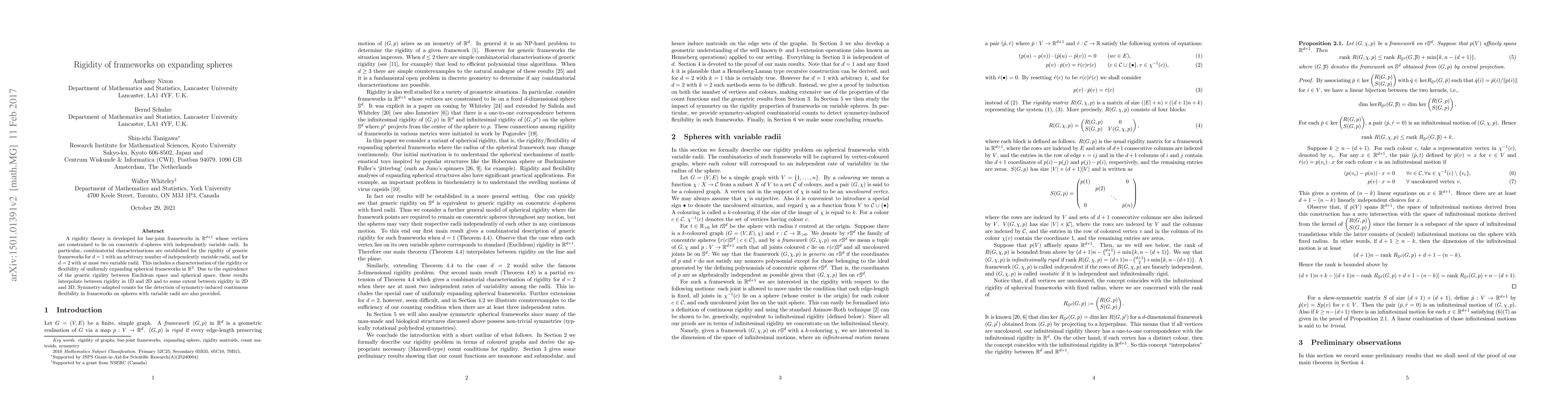 This paper develops a rigidity theory for bar-joint frameworks on expanding spheres, establishing combinatorial characterisations for the rigidity of frameworks in various dimensions and radii configurations. It also provides symmetry-adapted methods to detect continuous flexibility in these frameworks.