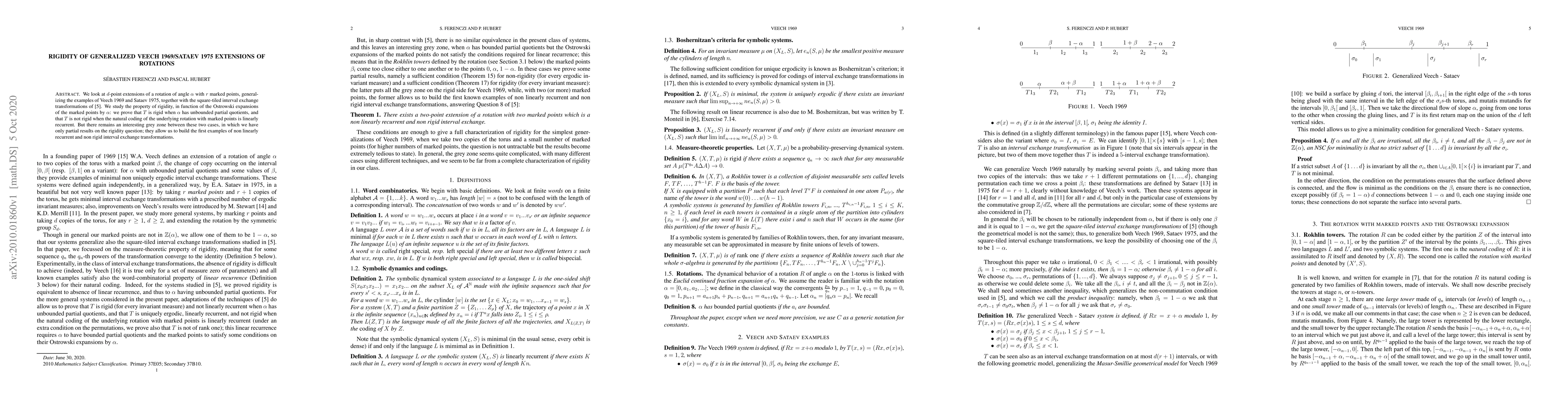 We look at $d$-point extensions of a rotation of angle $\alpha$ with $r$ marked points, generalizing the examples of Veech 1969 and Sataev 1975, together with the square-tiled interval exchange transformations of \cite{fh2}. We study the property of rigidity, in function of the Ostrowski expansions of the marked points by $\alpha$: we prove that $T$ is rigid when $\alpha$ has unbounded partial quotients, and that $T$ is not rigid when the natural coding of the underlying rotation with marked points is linearly recurrent. But there remains an interesting grey zone between these two cases, in which we have only partial results on the rigidity question; they allow us to build the first examples of non linearly recurrent and non rigid interval exchange transformations.