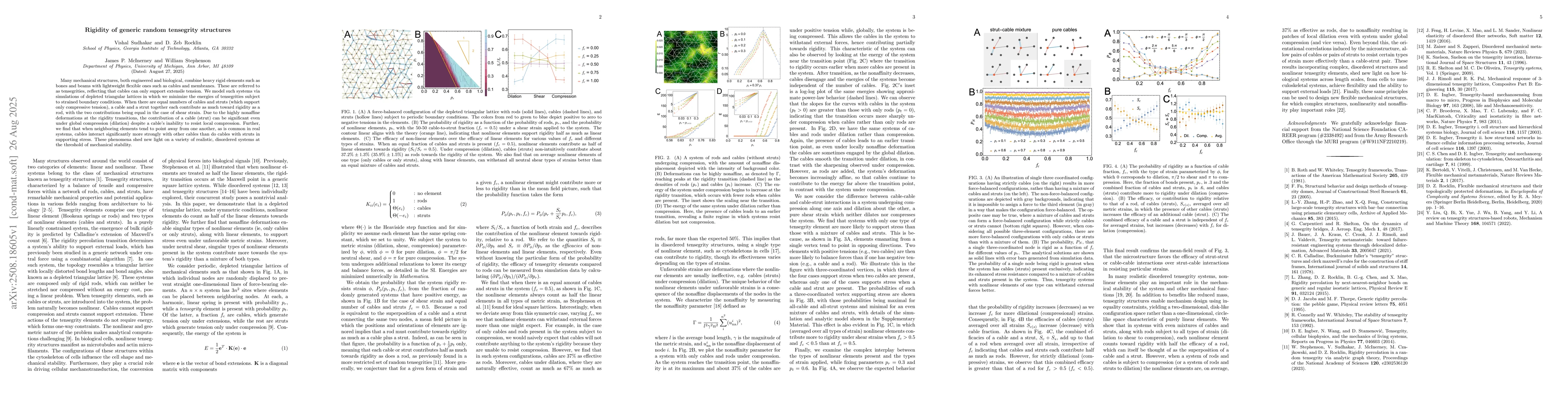 Many mechanical structures, both engineered and biological, combine heavy rigid elements such as bones and beams with lightweight flexible ones such as cables and membranes. These are referred to as tensegrities, reflecting that cables can only support extensile tension. We model such systems via simulations of depleted triangular lattices in which we minimize the energies of tensegrities subject to strained boundary conditions. When there are equal numbers of cables and struts (which support only compressive tension), a cable and a strut together each contribute as much toward rigidity as a rod, with the two contributions being equal in the case of shear strain. Due to the highly nonaffine deformations at the rigidity transitions, the contribution of a cable (strut) can be significant even under global compression (dilation) despite a cable's inability to resist local compression. Further, we find that when neighboring elements tend to point away from one another, as is common in real systems, cables interact significantly more strongly with other cables than do cables with struts in supporting stress. These phenomena shed new light on a variety of realistic, disordered systems at the threshold of mechanical stability.