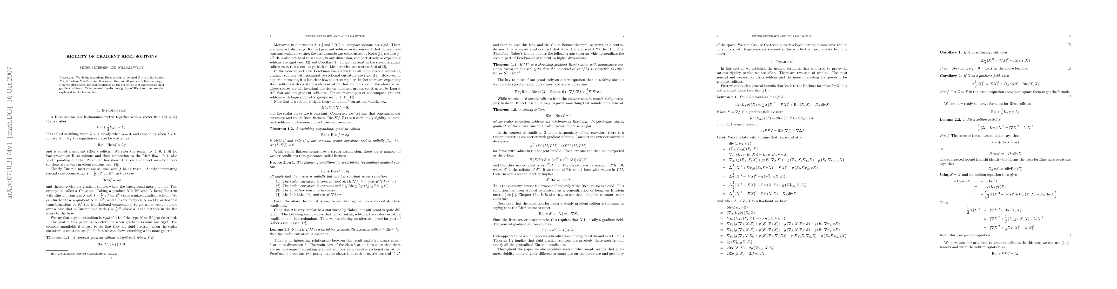 This paper investigates the rigidity of gradient Ricci solitons, defining a soliton as rigid if it forms a flat bundle with an Einstein base. The authors present conditions on the curvature that characterize rigid gradient solitons and discuss related results on the rigidity of Ricci solitons.