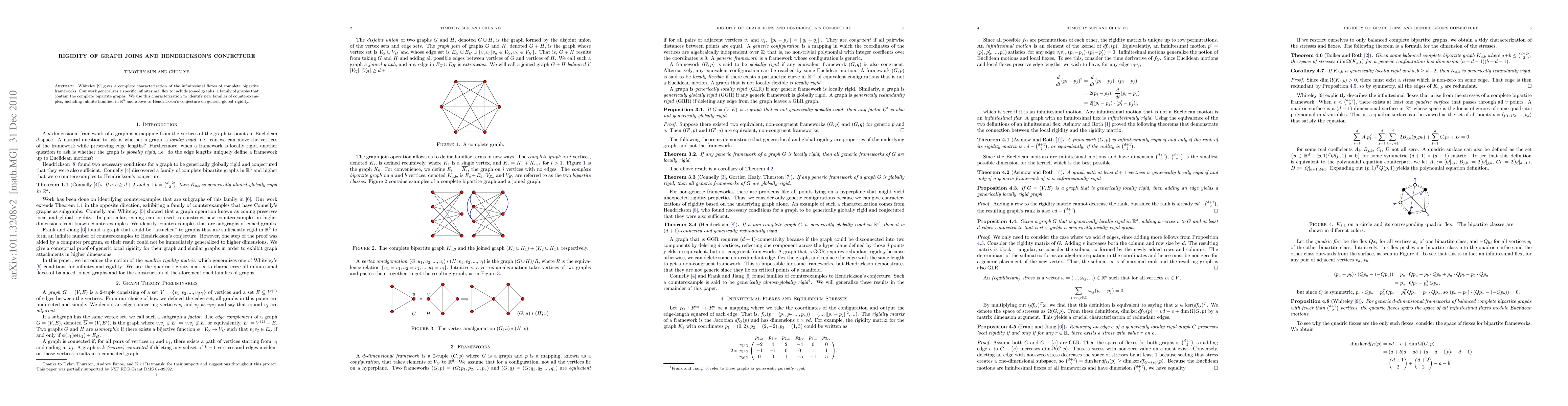 This paper generalizes a characterization of infinitesimal flexes to joined graphs, identifying new counterexamples in Hendrickson's conjecture on global rigidity, providing insight into the structure of rigid frameworks in higher dimensions.