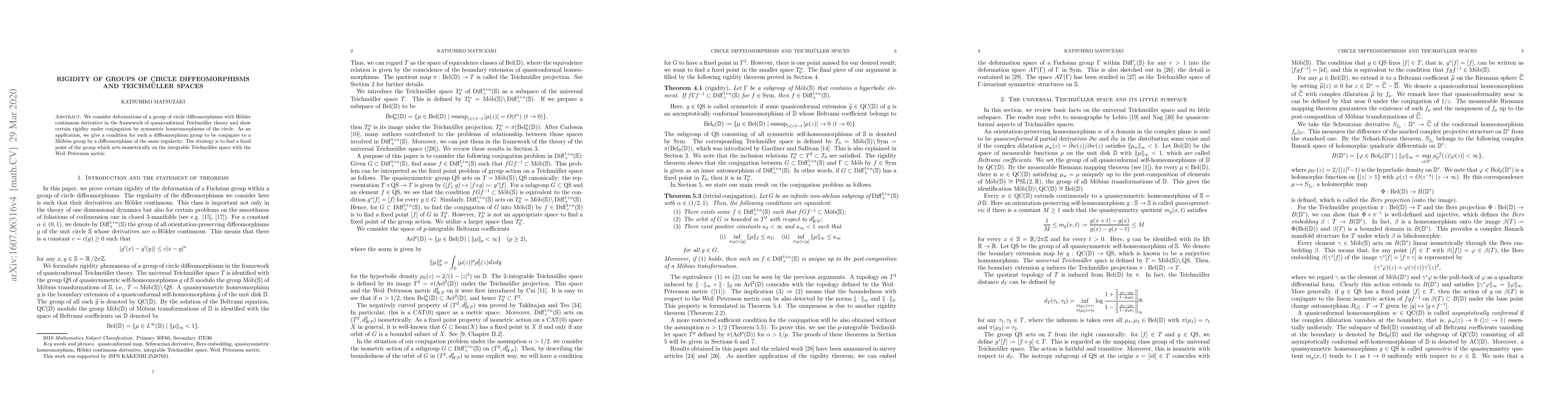 This paper explores the rigidity of groups of circle diffeomorphisms with H\"older continuous derivatives, demonstrating their stability under conjugation by symmetric homeomorphisms within the framework of quasiconformal Teichm\"uller theory. It provides conditions under which such groups are conjugate to M\"obius groups via diffeomorphisms of the same regularity.
