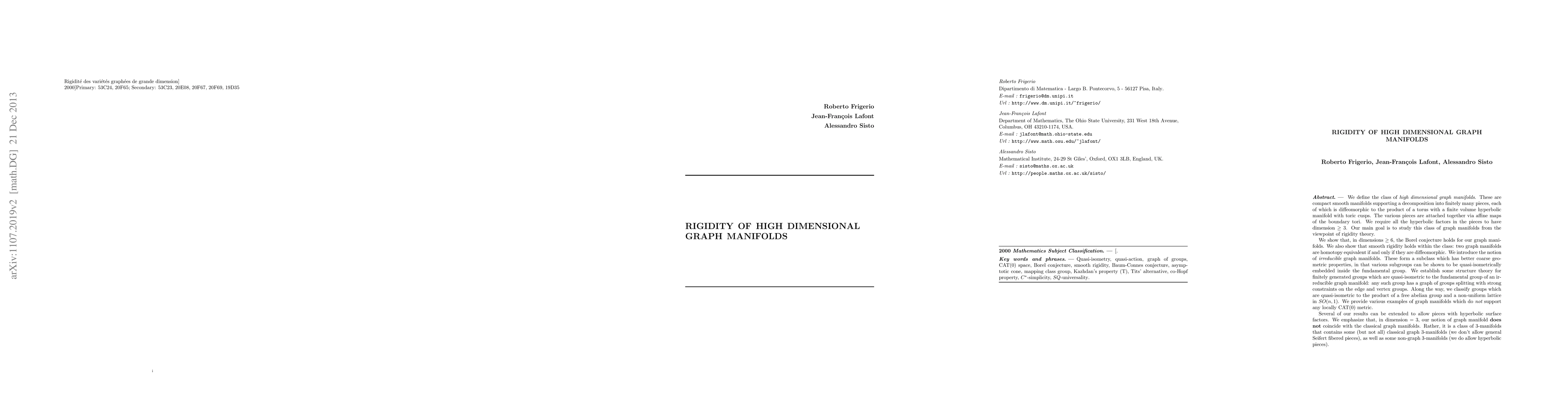 We define the class of high dimensional graph manifolds. These are compact smooth manifolds supporting a decomposition into finitely many pieces, each of which is diffeomorphic to the product of a torus with a finite volume hyperbolic manifold with toric cusps. The various pieces are attached together via affine maps of the boundary tori. We require all the hyperbolic factors in the pieces to have dimension at least 3. Our main goal is to study this class of graph manifolds from the viewpoint of rigidity theory. We show that, in high dimensions, the Borel conjecture holds for our graph manifolds. We also show that smooth rigidity holds within the class: two graph manifolds are homotopy equivalent if and only if they are diffeomorphic. We introduce the notion of irreducible graph manifolds, which form a subclass which has better coarse geometric properties. We establish some structure theory for finitely generated groups which are quasi-isometric to the fundamental group of an irreducible graph manifold: any such group has a graph of groups splitting with strong constraints on the edge and vertex groups. Finally, we prove that in every dimension >3 there exist examples of irreducible graph manifolds which do not support any locally CAT(0) metric.