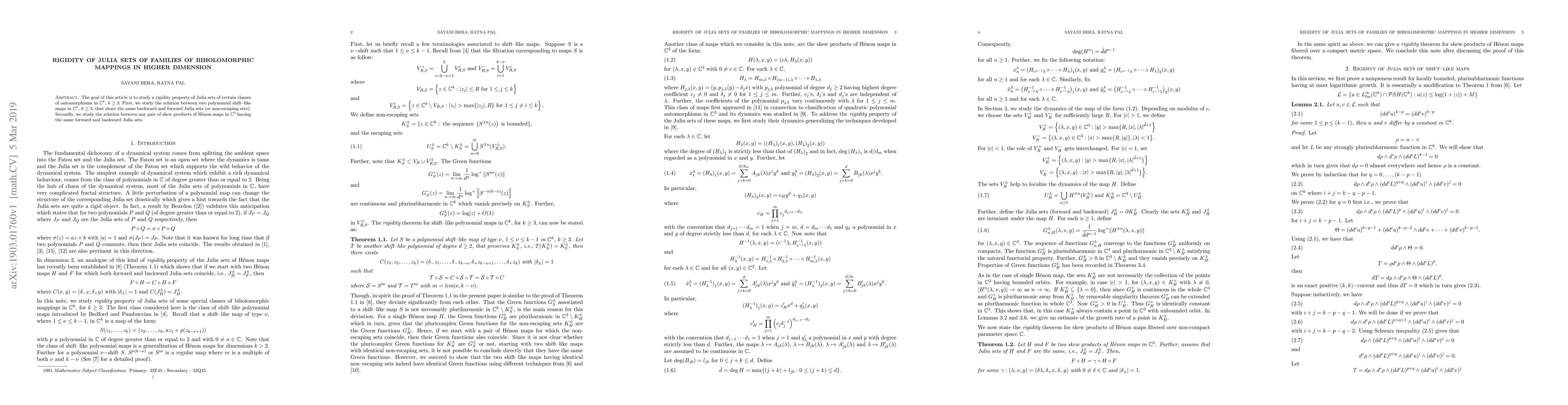 This paper investigates the rigidity of Julia sets for specific classes of biholomorphic mappings in higher dimensions, focusing on the equivalence of Julia sets for polynomial shift-like maps and skew products of Hénon maps in $\mathbb{C}^k$, $k \ge 3$. It establishes the relationship between such mappings sharing identical forward and backward Julia sets.