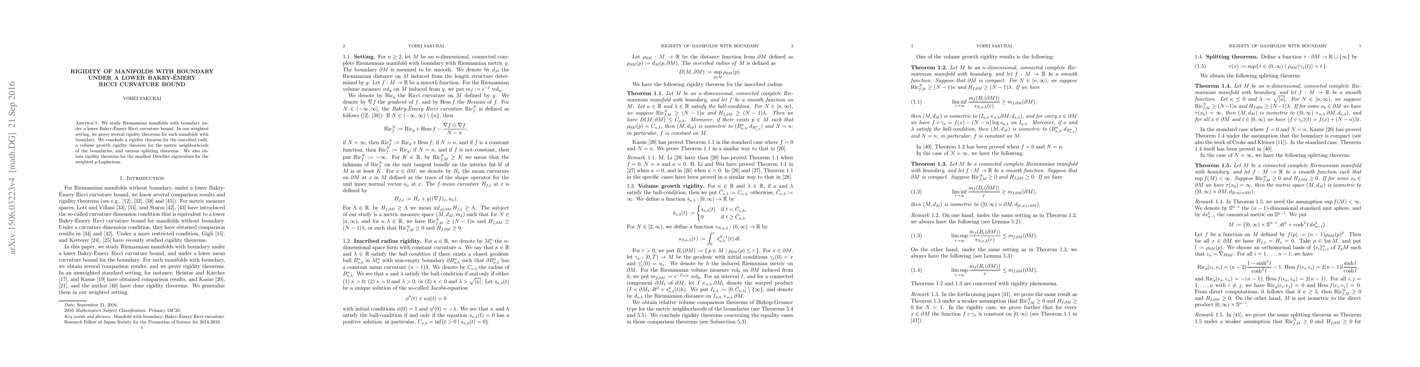 This paper investigates Riemannian manifolds with boundary under a lower Bakry-Émery Ricci curvature bound, proving several rigidity theorems, including results on the inscribed radii, volume growth, and splitting theorems, as well as rigidity for the smallest Dirichlet eigenvalues of weighted p-Laplacians.