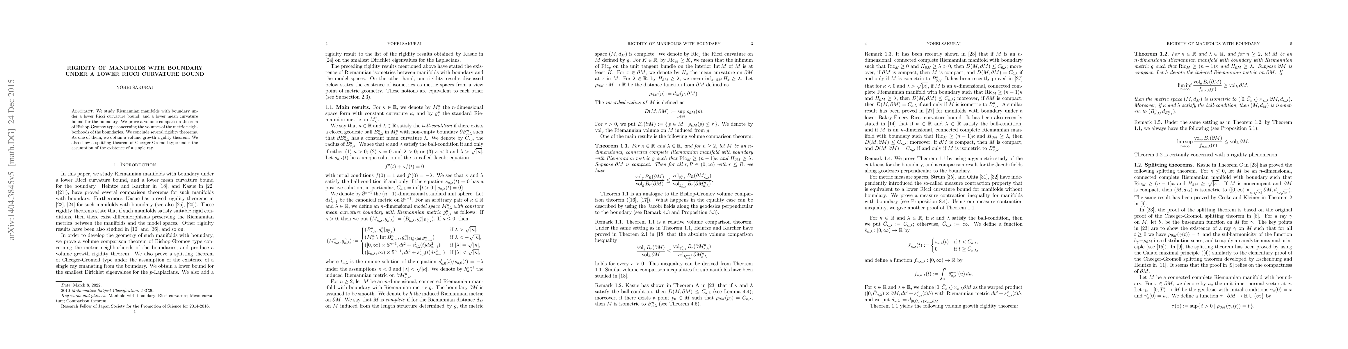 We study Riemannian manifolds with boundary under a lower Ricci curvature bound, and a lower mean curvature bound for the boundary. We prove a volume comparison theorem of Bishop-Gromov type concerning the volumes of the metric neighborhoods of the boundaries. We conclude several rigidity theorems. As one of them, we obtain a volume growth rigidity theorem. We also show a splitting theorem of Cheeger-Gromoll type under the assumption of the existence of a single ray.