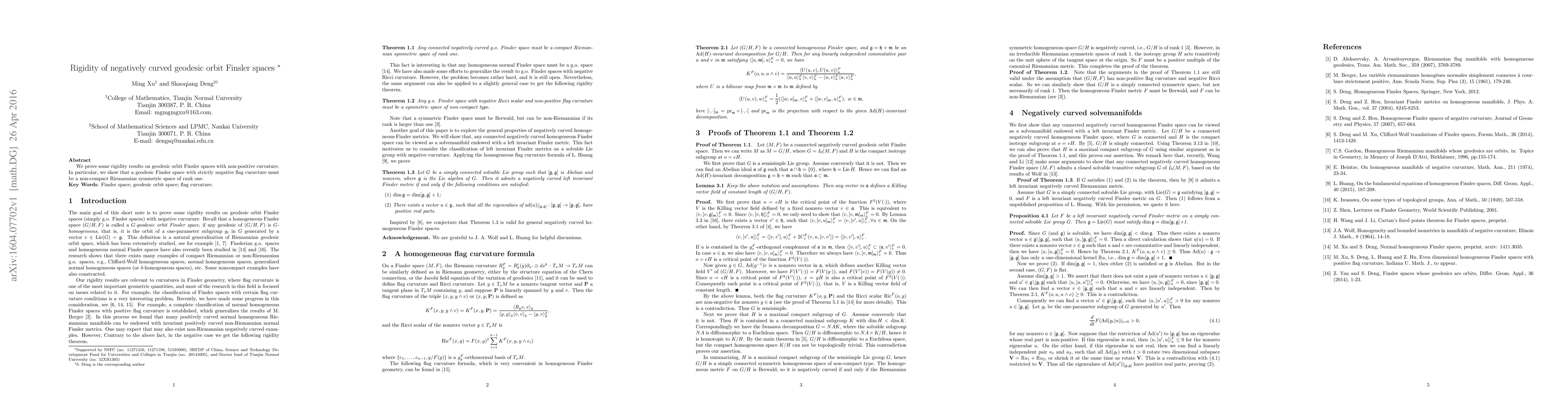 This paper establishes rigidity results for geodesic orbit Finsler spaces with non-positive curvature, demonstrating that strictly negatively curved examples are isomorphic to non-compact Riemannian symmetric spaces of rank one.