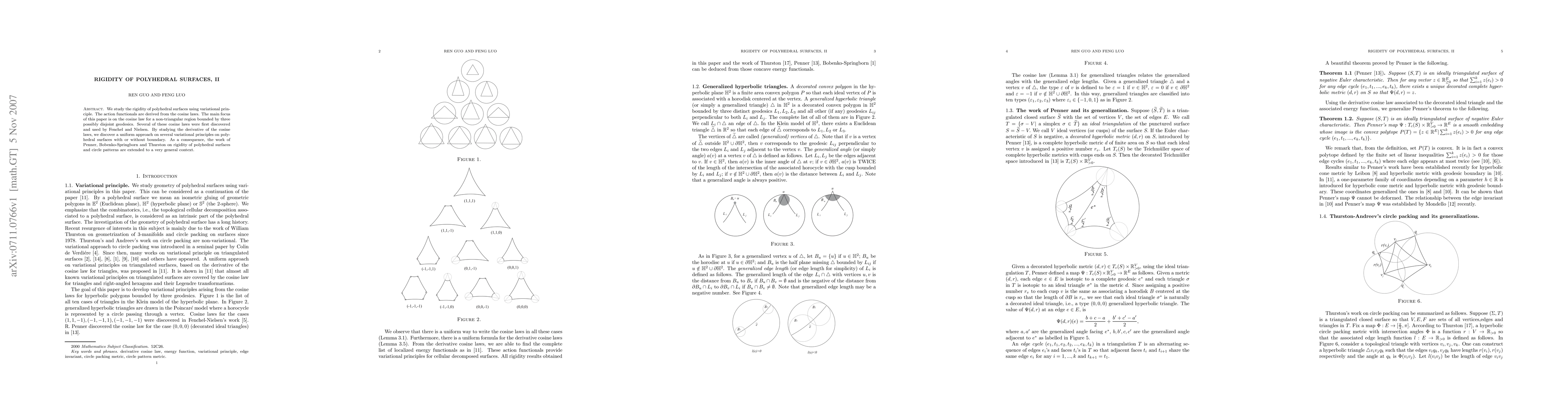 We study the rigidity of polyhedral surfaces using variational principle. The action functionals are derived from the cosine laws. The main focus of this paper is on the cosine law for a non-triangular region bounded by three possibly disjoint geodesics. Several of these cosine laws were first discovered and used by Fenchel and Nielsen. By studying the derivative of the cosine laws, we discover a uniform approach on several variational principles on polyhedral surfaces with or without boundary. As a consequence, the work of Penner, Bobenko-Springborn and Thurston on rigidity of polyhedral surfaces and circle patterns are extended to a very general context.