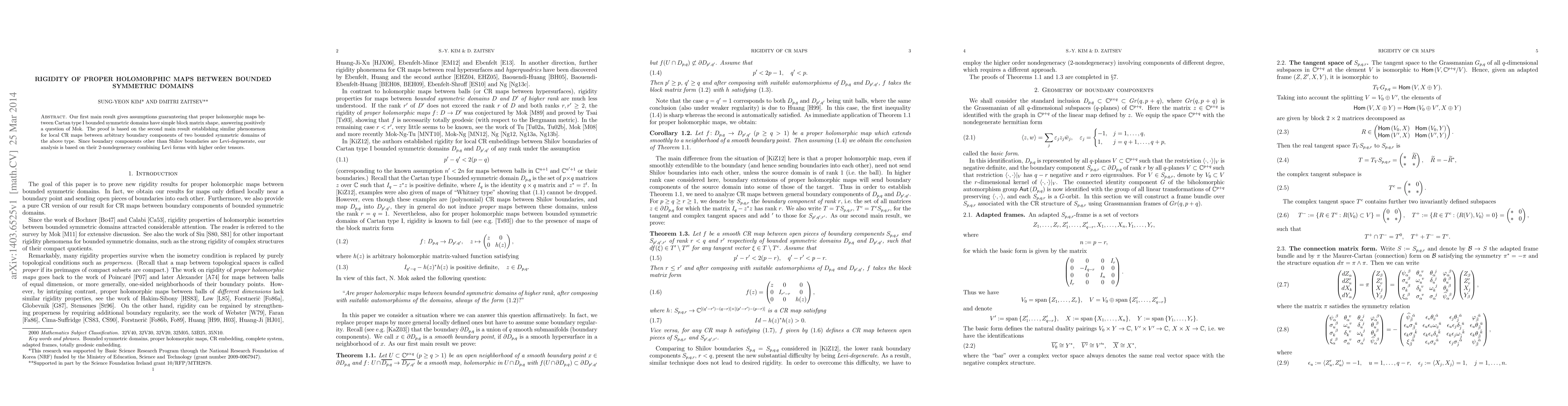 Our first main result gives assumptions guaranteeing that proper holomorphic maps between Cartan type I bounded symmetric domains have simple block matrix shape, answering positively a question of Mok. The proof is based on the second main result establishing similar phenomenon for local CR maps between arbitrary boundary components of two bounded symmetric domains of the above type. Since boundary components other than Shilov boundaries are Levi-degenerate, our analysis is based on their $2$-nondegeneracy combining Levi forms with higher order tensors.