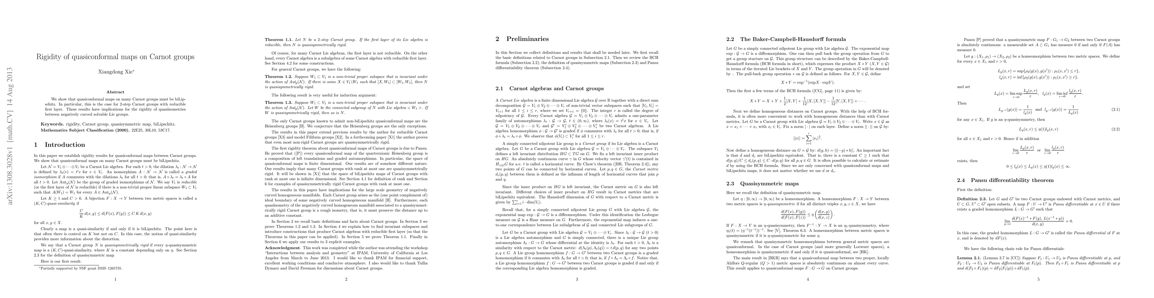 Summary: The paper demonstrates that quasiconformal maps on numerous Carnot groups, specifically 2-step groups with reducible first layers, are necessarily biLipschitz. This finding also contributes to understanding the rigidity of quasiisometries in negatively curved solvable Lie groups.