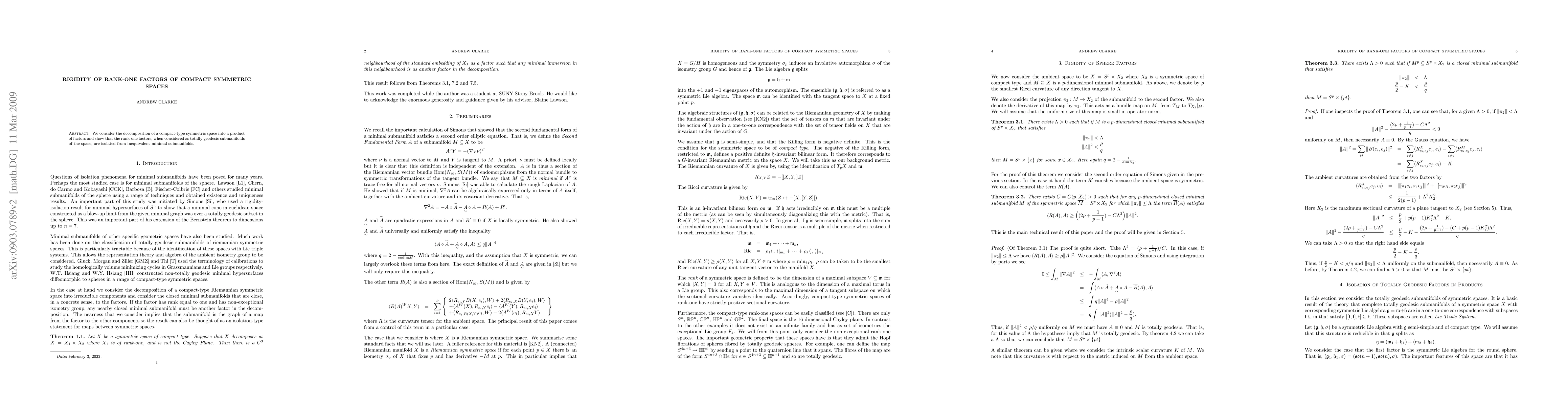 This paper demonstrates that rank-one factors in the decomposition of compact-type symmetric spaces are isolated from other minimal submanifolds, establishing their rigidity as totally geodesic submanifolds.