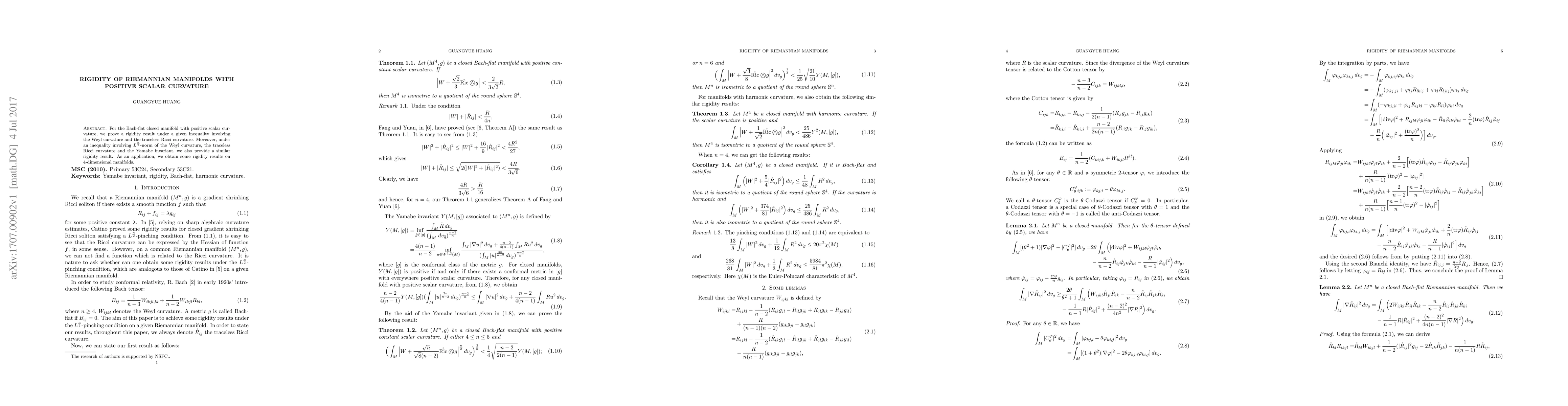 This paper proves rigidity results for Bach-flat closed Riemannian manifolds with positive scalar curvature under specific inequalities involving the Weyl curvature, traceless Ricci curvature, and Yamabe invariant. It also applies these results to derive rigidity findings for 4-dimensional manifolds.