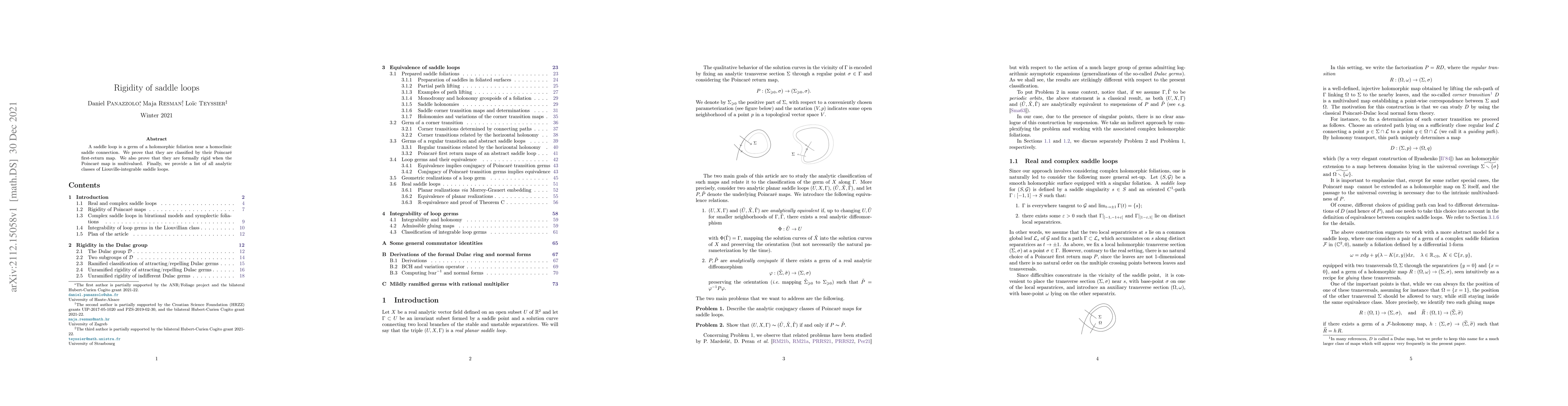 This paper classifies saddle loops near homoclinic saddle connections by their Poincaré first-return map and demonstrates their formal rigidity when the map is multivalued. It also enumerates all analytic classes of Liouville-integrable saddle loops.
