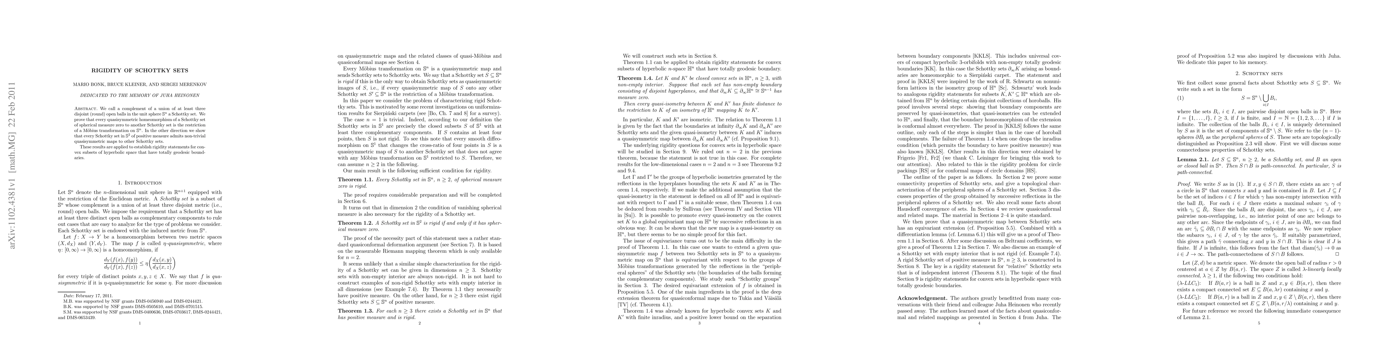 We call a complement of a union of at least three disjoint (round) open balls in the unit sphere S^n a Schottky set. We prove that every quasisymmetric homeomorphism of a Schottky set of spherical measure zero to another Schottky set is the restriction of a Mobius transformation on S^n. In the other direction we show that every Schottky set in S^2 of positive measure admits non-trivial quasisymmetric maps to other Schottky sets. These results are applied to establish rigidity statements for convex subsets of hyperbolic space that have totally geodesic boundaries.