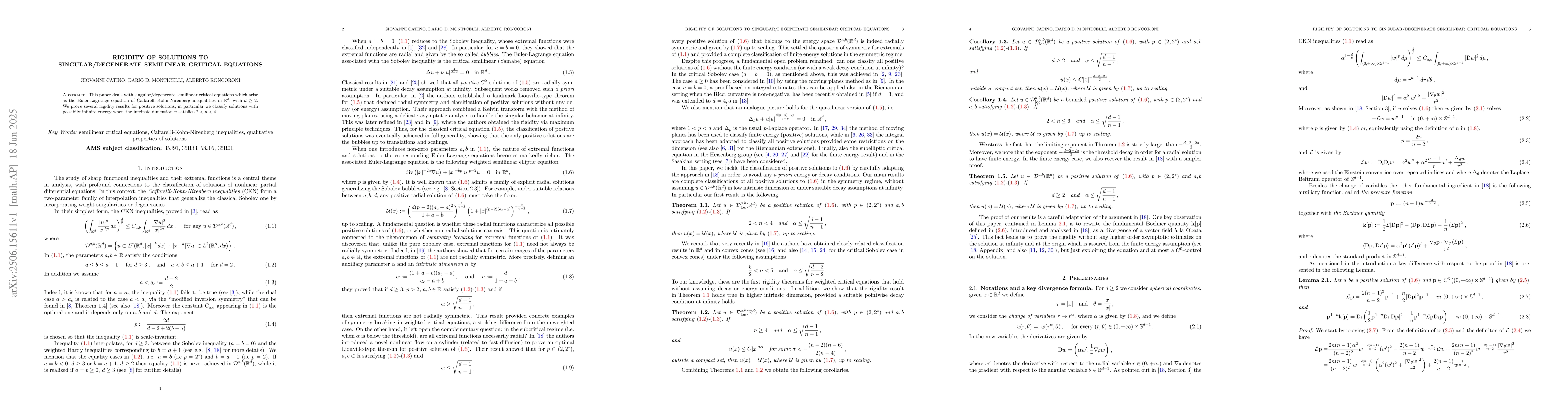 arise as the Euler-Lagrange equation of Caffarelli-Kohn-Nirenberg inequalities