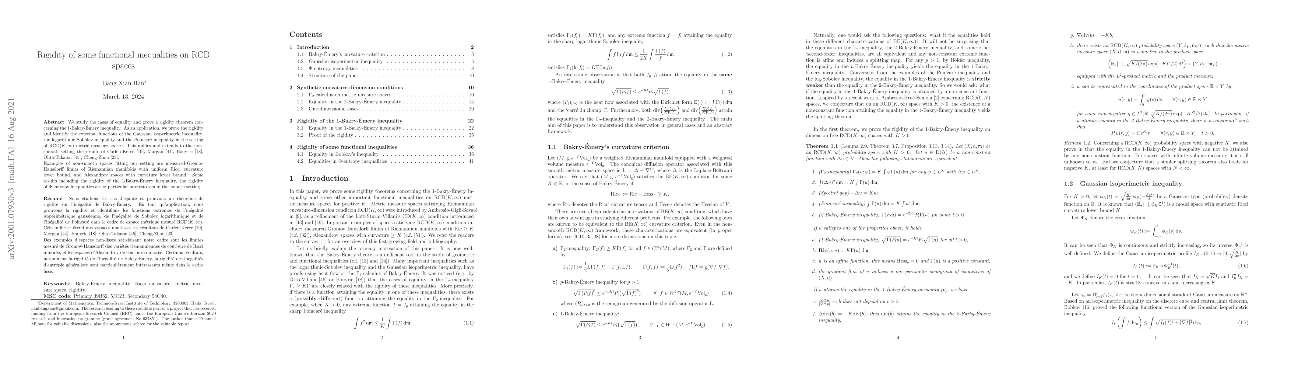The paper develops new techniques for analyzing functional inequalities on RCD(K,∞) spaces, particularly focusing on the 1-Bakry-Émery inequality and its connections to Gaussian isoperimetric and logarithmic Sobolev inequalities.