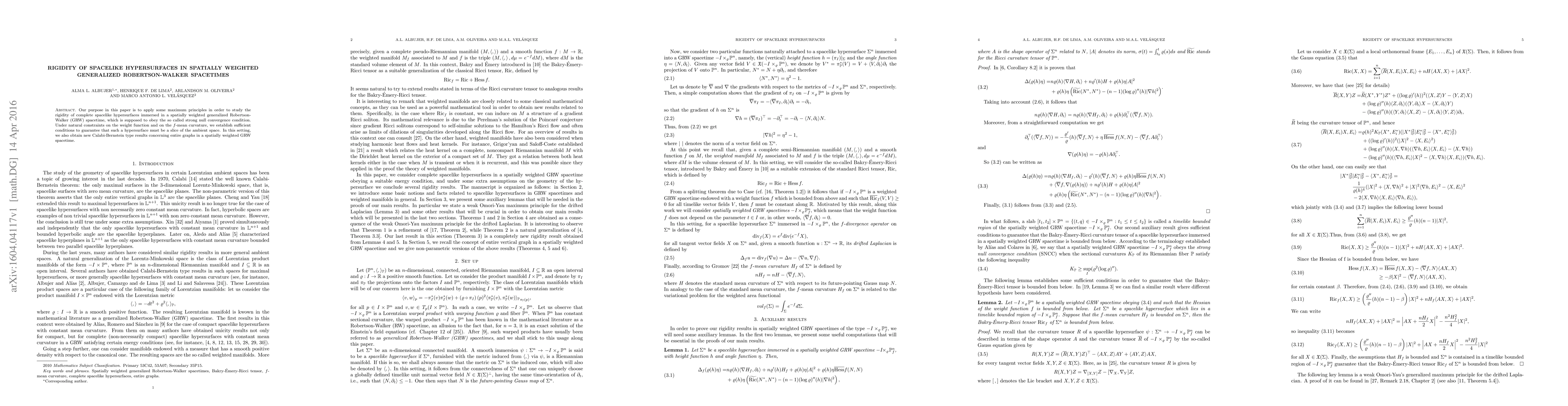 Our purpose in this paper is to apply some maximum principles in order to study the rigidity of complete spacelike hypersurfaces immersed in a spatially weighted generalized Robertson-Walker (GRW) spacetime, which is supposed to obey the so called strong null convergence condition. Under natural constraints on the weight function and on the f-mean curvature, we establish sufficient conditions to guarantee that such a hypersurface must be a slice of the ambient space. In this setting, we also obtain new Calabi-Bernstein type results concerning entire graphs in a spatially weighted GRW spacetime.