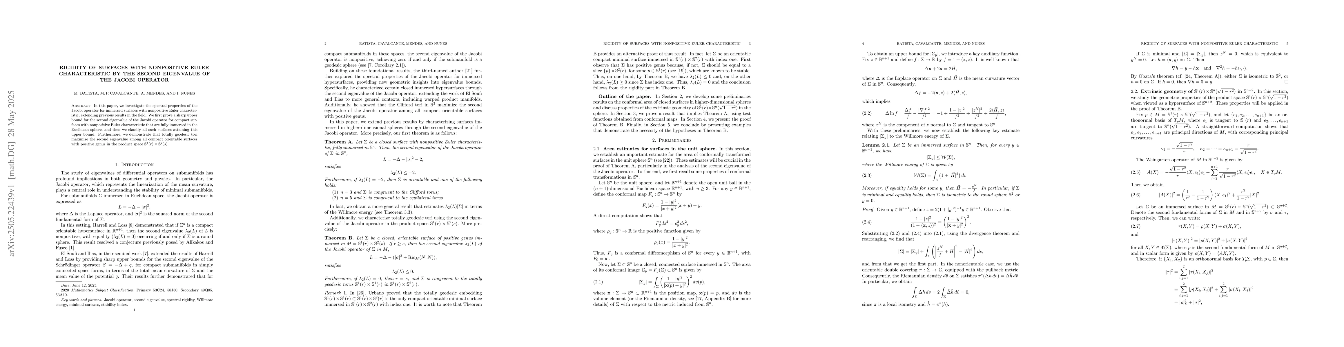 Research investigates spectral properties of Jacobi operator on surfaces with nonpositive Euler characteristic, finding upper bounds and maximal eigenvalues for specific surface types.